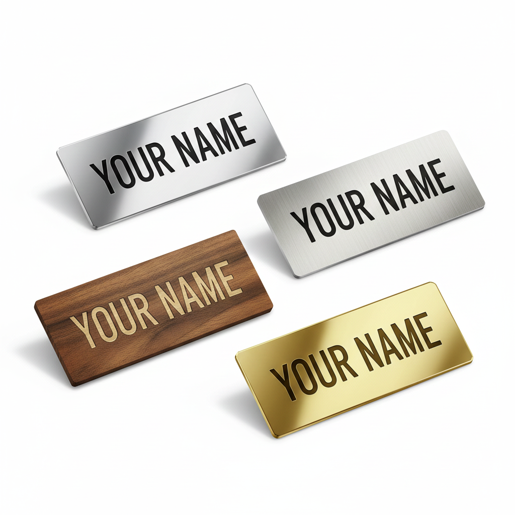 Premium quality name plates in multiple materials – metal, acrylic, wood, and more!